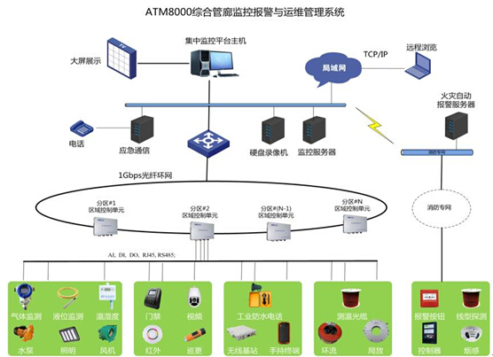 集中監(jiān)控、統(tǒng)一管理:所有子系統(tǒng)通過光纖通訊網(wǎng)實(shí)時(shí)的將現(xiàn)場(chǎng)監(jiān)測(cè)數(shù)據(jù)傳送至桑田島綜合管廊工程控制中心的集中監(jiān)控平臺(tái)上,集中監(jiān)控、統(tǒng)一管理。