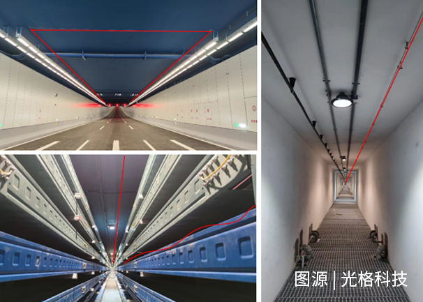 ▲光格感溫光纖隧道現(xiàn)場敷設(shè)圖(標紅示意)
