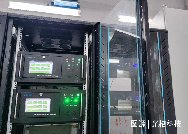 ▲光格光纖測溫主機現(xiàn)場圖(左側(cè)機柜內(nèi))