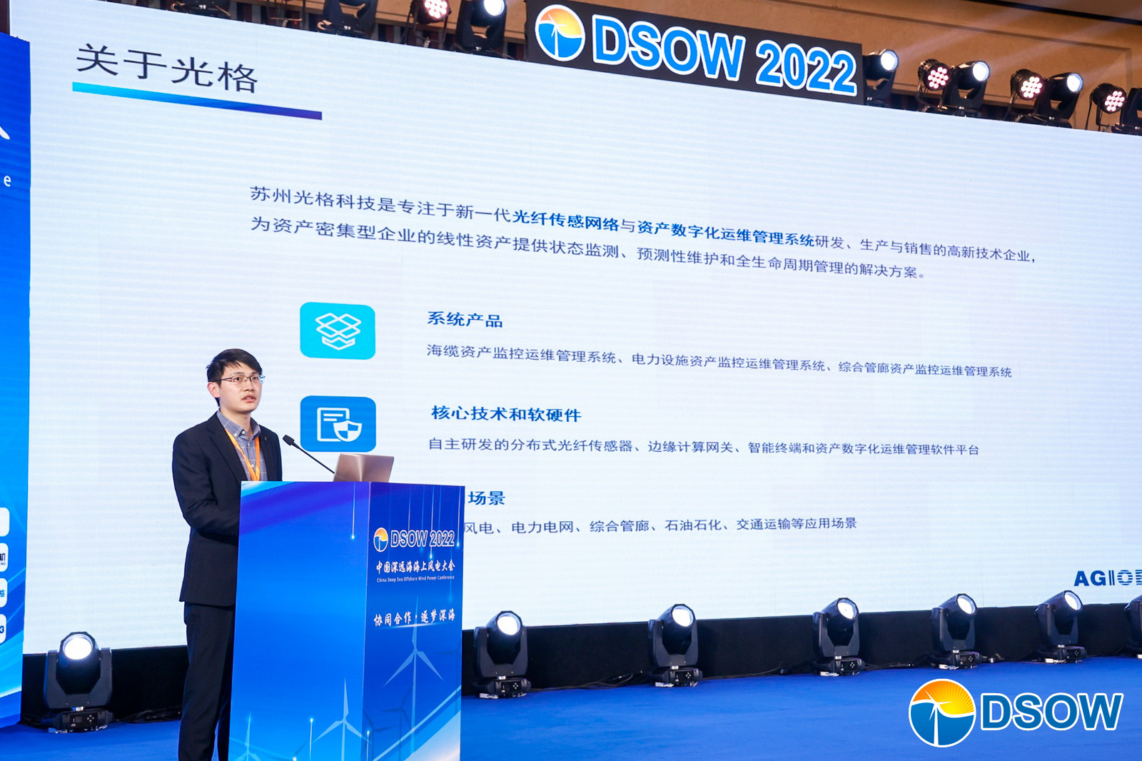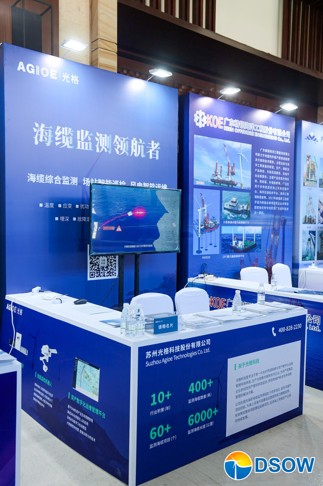 光格科技自創立以來即專注于新一代光纖傳感網絡與資產數字化運維管理系統的研發和產業化,是該領域國內早期開拓者之一。此次高峰論壇會上,光格科技不僅受邀做了《海纜監控運維實踐與展望》專題演講報告,同時還在企業展示區內為大家詳細展示了海纜監測系統的綜合解決方案。