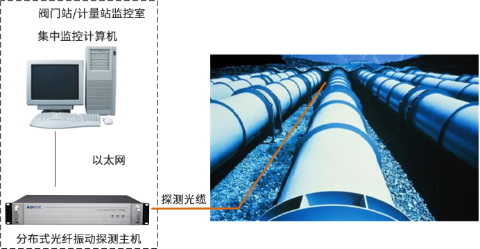 光格油氣管道防盜防外破監測系統由分布式光纖振動探測主機及相應的探測光纜組成,對管道的周邊擾動信號進行連續線型實時在線監測,從而監測管道是否有破壞活動發生。