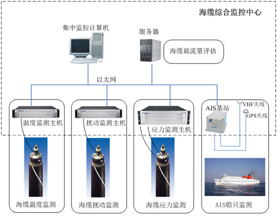 海底光電線纜主要用于大陸與海島、海島與海島、大陸與海洋石油平臺、石油平臺與石油平臺之間的電力供應和通信傳輸。海纜通常埋在海底1~2米深的位置,時常會遭受船錨或捕魚設備等機械的損害,或因電流引起的異常發熱被燒壞。長期以來,由于無法對埋在海底的線纜進行安全監管,其安全完全“聽天由命”,一旦被損壞,就會讓人措手不及,相關石油平臺不得不停產,然后由施工人員將海纜打撈起來重修,每次維修費用一般高達數百萬元。因此,迫切需要適宜的海底電纜在線監測技術手段對海纜實時運行情況進行監測。